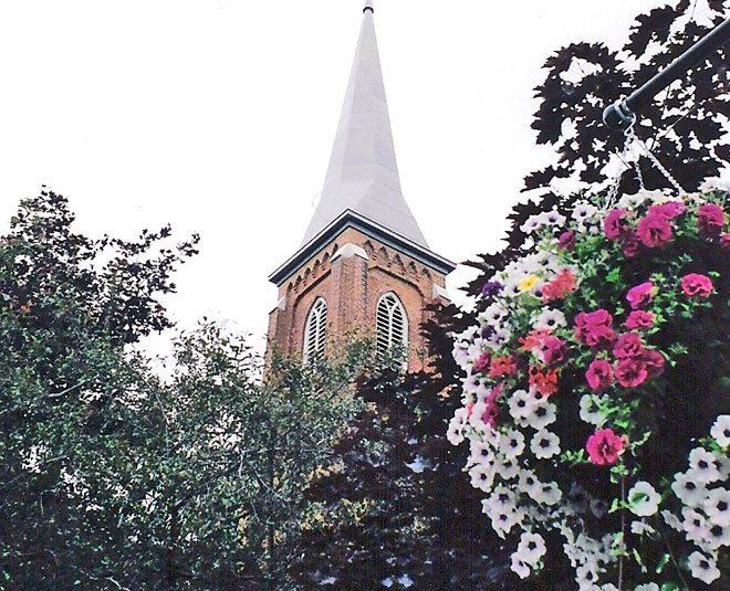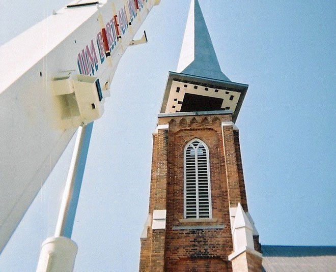 The original church spire blew down in a wind storm in January of 1948 and the church was without one for over 50 years. Fundraising efforts allowed a replacement spire to be built and installed in 2002.